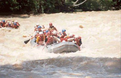 animales de la región. Continuamos el Rafting hasta llegar a familias